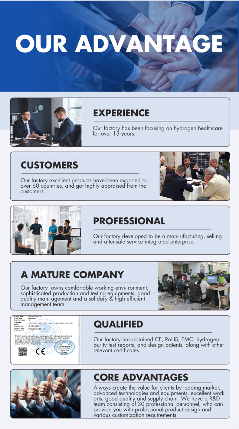 Our company is more than just a product supplier; we are a provider of comprehensive health solutions. Our diverse and innovative product portfolio is designed to seamlessly integrate into all aspects of daily life, offering multiple ways to experience the benefits of hydrogen energy. Our product portfolio includes: