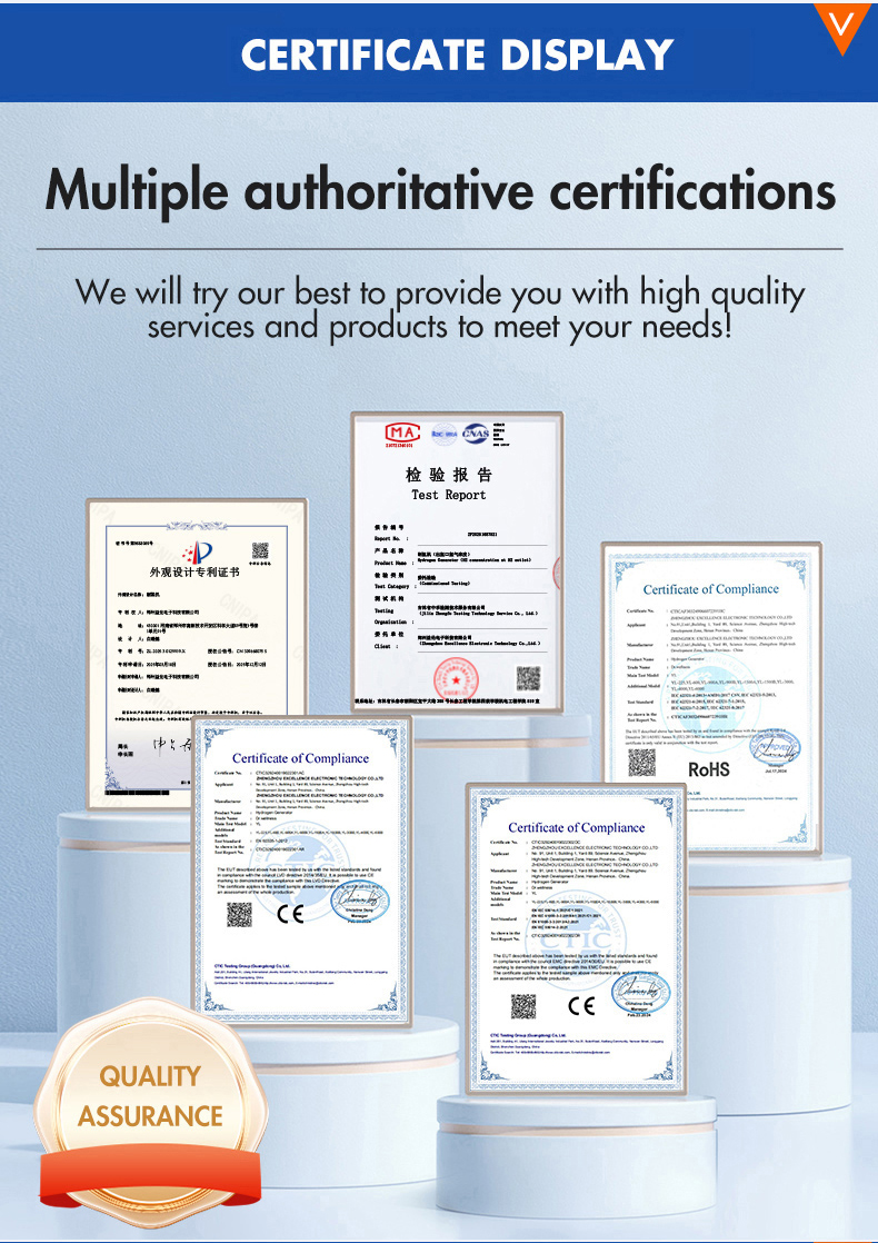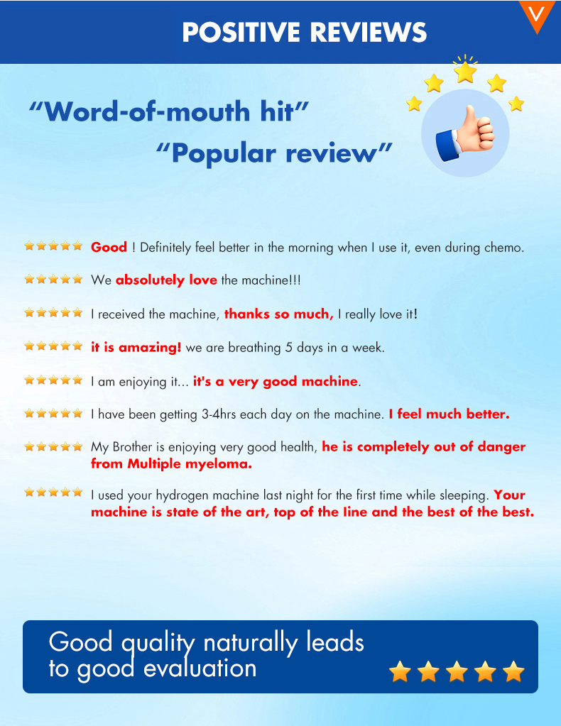 The hydrogen inhalation machine uses pure water or distilled water with TDS=0 to produce hydrogen. Suitable pure water or double-distilled water is fed into the anode chamber of the electrolytic cell and supplied to the membrane electrode assembly. Oxygen, hydrogen ions, and electrons are released during the reaction on the anode side. Electrons are transferred to the cathode through an external circuit, while oxygen is released from the anode. Under the influence of the electric field, hydrogen ions reach the cathode as hydrates. Electrons are absorbed to form hydrogen gas , which is released from the cathode chamber and enters the gas-water separator to generate high-purity hydrogen gas.